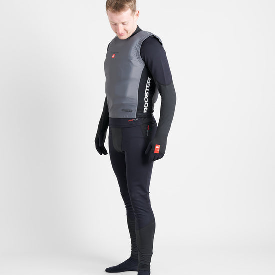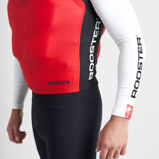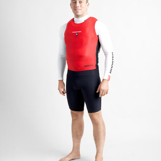 The Rooster Race Bib is designed to provide a streamlined, catch free fit when worn over the top of a buoyancy aid. The snug fitting lycra stretches over buoyancy aids and trapeze harnesses to minimise snags on sheets, trapeze and control lines and prevent tiller extensions getting hooked underneath shoulder straps.